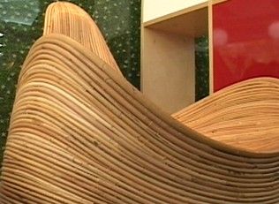 긴 나뭇잎을 엉켜 놓은 소파 등 다양한 방식의 짜임으로 가구가 만들어지고 있습니다.