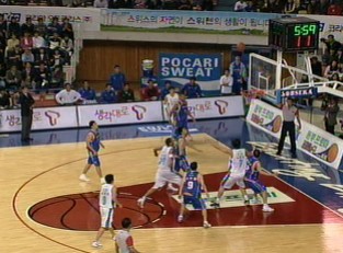 줄곧 뒤지던 KCC는 4쿼터 중반 추승균의 3점슛과 하퍼의 골밑슛으로 극적으로 동점을 만들었습니다.