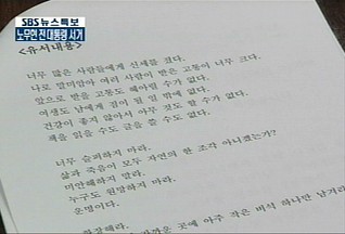 유서는 사고 이후 비서관에 의해 발견됐고, 출력된 상태로 조카사위인 정재성 변호사에게 건네졌습니다.
