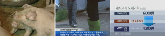 양돈농가는 도매 시장에서 돼지를 넘기는 지육 가격이 실제 소득인데, 2007~8년에 킬로그램당 6천 원이던 도매가격은 지금 4천2백원대를 간신히 웃돕니다. (그러니 여기서 유통 업체들을 욕하지 않을 수가 없습니다 -_-) 신종 플루 초기에 돼지가 매개체로 잘못 알려진 탓도 크죠.