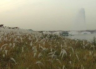 강을 따라 펼쳐진 물억새가 하얀 손을 흔들며 가을을 알립니다.
