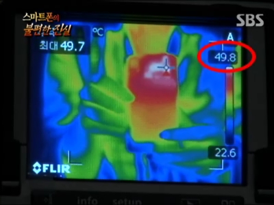 스마트폰을 잡고 있던 손가락에 화상을 입은 것이다. 발열의 진원지는 메인보드가 장착된 스마트폰의 상단부.
