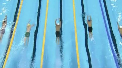 그런데 200미터 레이스 때 처럼 잠영 거리가 짧아 기세를 이어가지 못했습니다.