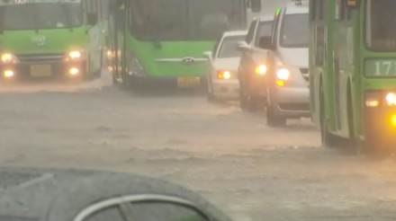 이틀째 폭우가 이어지면서 오늘(27일) 오전 광화문 세종로 사거리는 지난해에 이어 다시 물바다가 됐습니다.