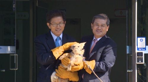 황 박사 팀은 오늘 이 복제 코요테 8마리를 경기도에 기증했습니다.
