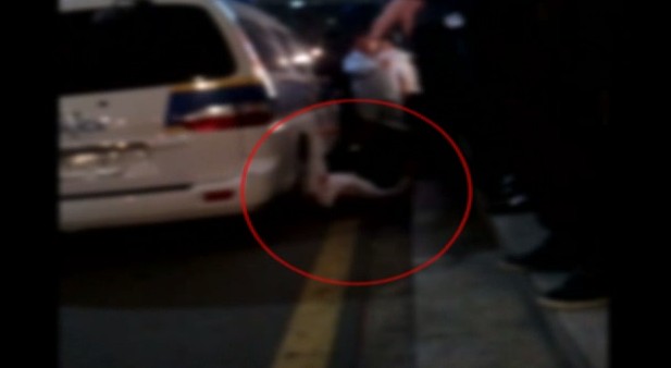 경찰차 바로 옆에서 흉기에 찔린 폭력조직원이 고통을 호소합니다.