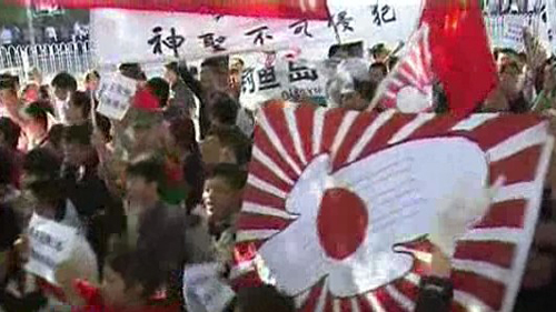[시위 참가자 : 모든 중국인들이 단결해 일본 제품 불매운동을 벌이고 일본에 항의해야 합니다. 댜오위다오는 중국 영토입니다.]