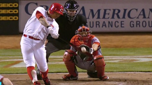 워싱턴의 존슨 감독은 공이 담장을 넘어가기 전에 관중이 잡았다며 항의했지만 비디오 판독 끝에 홈런으로 인정됐습니다.
