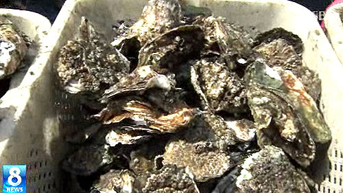 강바닥 바위에 붙어 있는 1~2년 자란 굴을 잠수부가 일일이 손으로 채취한 겁니다.
