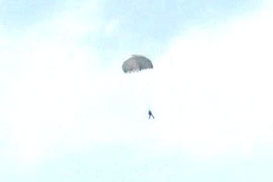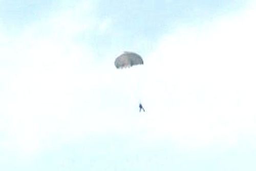 한 번에 5명 정도씩 낙하산을 펴고 지상으로 내려왔습니다.