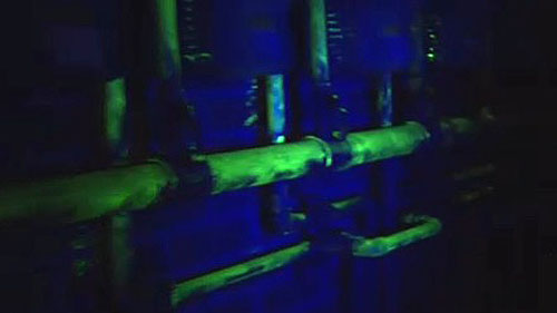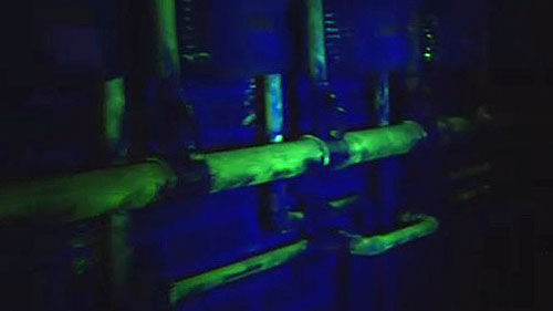 이 일대 건물 가스배관에는 형광물질이 칠해져 있습니다.