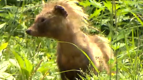 멧돼지와 너구리는 인기척에도 놀라지 않습니다.