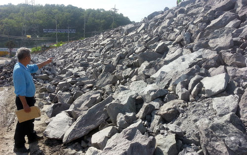 덤프트럭 등 중장비가 굉음을 내며 터널에서 나온 대형 암석을 100여m 떨어진 곳으로 쉴 새 없이 옮겼습니다.