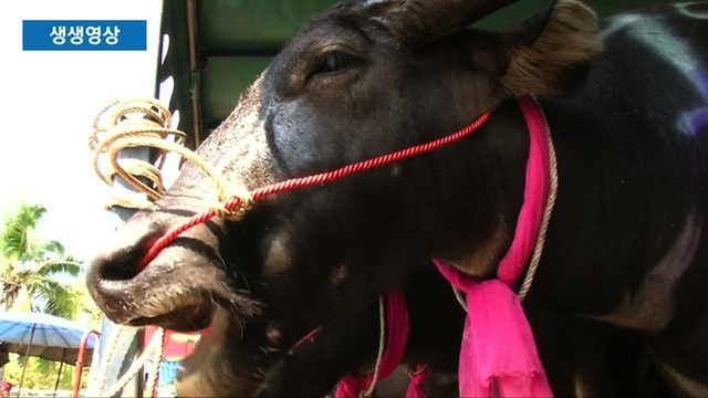 태국에서는 말이 아니라 물소를 타고 달리는 이색 경주 대회가 열렸습니다.