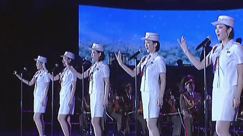 지금 보신 것은 모란봉악단 노래고요, 청봉악단 노래도 잠깐 들어볼까요.