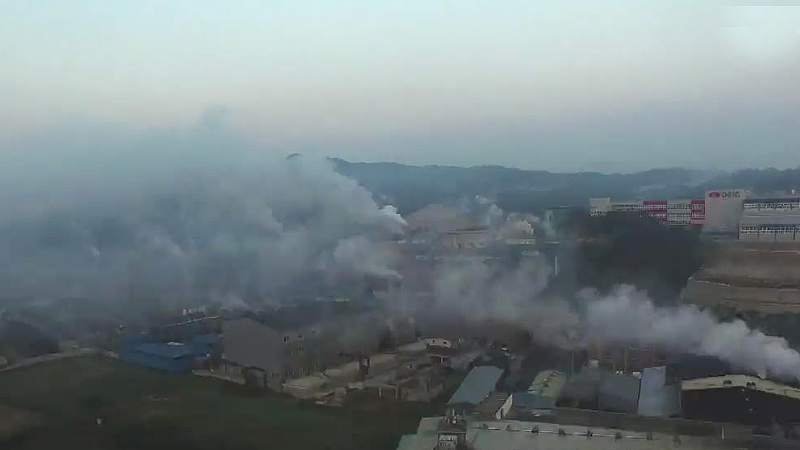 새벽 시간, 염색 공장 굴뚝마다 짙은 연기가 뿜어져 나옵니다.