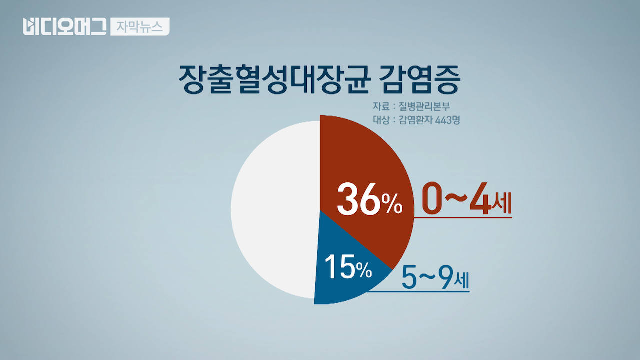 질병관리본부가 지난 5년간 발생한 장 출혈성 대장균 감염증 환자를 분석한 결과에서도 5세 미만 영유아가 가장 취약한 것으로 나타났습니다. 감염 환자의 36%가 0세에서 4세에 속했습니다. 합병증인 용혈성요독증후군으로 진행된 24명 가운데, 5세 미만이 58%나 됐습니다.