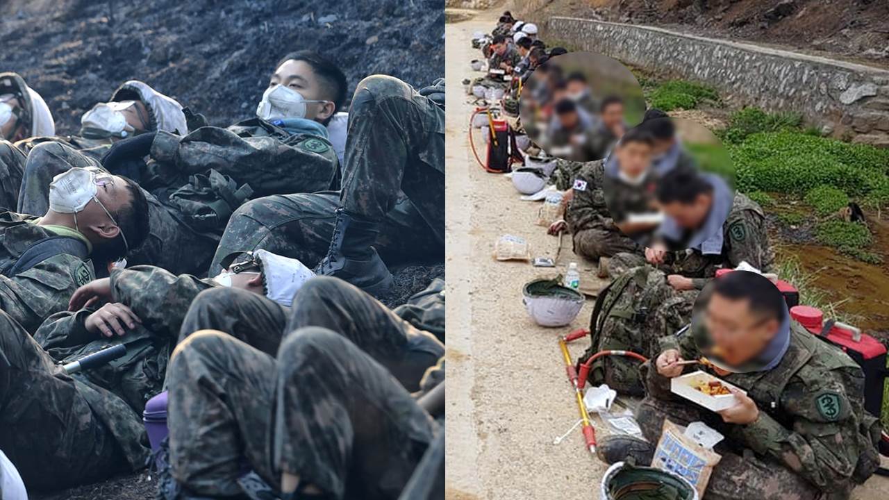 또 흙길 가장자리에 줄 지어 식사를 하는 모습을 본 한 네티즌은 "경운기라도 지나가면 밥을 먹다 바로 일어나 비켜야 하는 게 아니냐" "산불 진화 작전으로 이미 연기를 많이 마셨을텐데 흙먼지까지 마셔야 하나" 라며 분통을 터뜨리기도 했습니다.