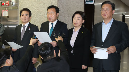 바른미래당 손학규·정의당 심상정·평화당 정동영 대표와 대안신당 유성엽 창당준비위원장 등 민주당을 제외한 '4+1' 협의체 참여 정당·정치그룹 대표들은 이날 오전 국회에서 회동해 연동형 캡(cap) 30석 한시적 적용, 석패율제 도입 등 선거법 합의 사항을 발표했습니다.