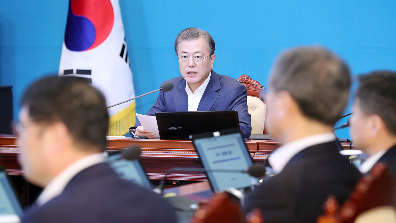 문재인 대통령은 코로나19 신규 확진자 수가 꾸준히 줄어들고 있다면서, 현재의 추세를 계속 이어나간다면 코로나19 방역의 모범사례로 평가받을 것이라고 말했습니다.