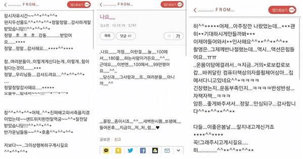 특히 김소연이 남긴 글에 '*^^*' 라는 이모티콘이 반복적으로 등장해 눈길을 끌었는데요, 이를 본 누리꾼들은 "'*^^*' 없이 글 남기기 미션 해주세요", "음성 지원되네요. 김소연 씨가 말하는 거 받아 적으면 저런 느낌임", "진짜 등산 카페 우수회원 말투" 등의 유쾌한 반응을 보였습니다.
