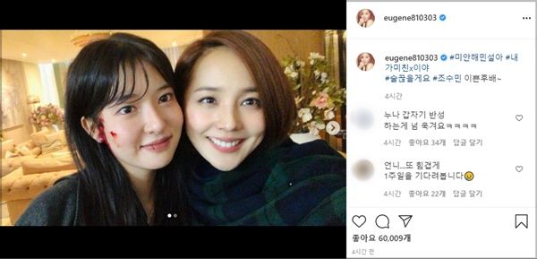 또 유진이 해당 사진과 함께 "미안해, 민설아. 내가 미친X이야. 술 끊을게"라는 재치 있는 해시태그를 붙여 웃음을 안기기도 했습니다. 이에 누리꾼들은 "펜트하우스 과몰입 방지 짤로 적절하다", "오윤희는 밉지만 유진 언니는 사랑해요", "갑자기 반성하는 거 너무 웃기다" 등 유쾌한 반응을 보이며 호응했습니다.