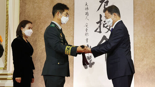 문 대통령은 삼정검 수여식 후 환담에서 아프가니스탄인 국내 수송 작전인 '미라클 작전', 코로나19 백신 수송지원, 국군 전사자 유해봉환 과정 등에서 보여준 군의 활약을 높이 평가했습니다.