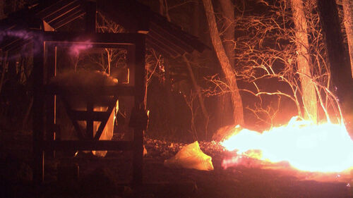 소방대원들의 헌신으로 산불은 꺼졌지만 산양이 자주 찾아오는 먹이 급여대 주변 숲도 잿더미로 변했다. 천만다행으로 뽕잎을 놓아둔 먹이 급여대는 불길을 피한 채 온전했다. 먹이터 주변에 설치한 카메라도 일부는 불에 탔지만 화마를 피한 카메라가 산불이 시작된 뒤 무슨 일이 있었는지 빠짐없이 지켜봤다.