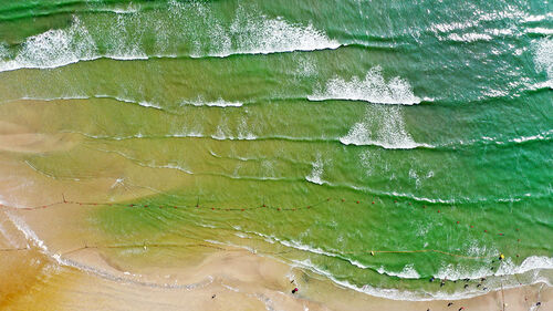 해수욕장 앞 바닷물이 초록빛으로 변했습니다.