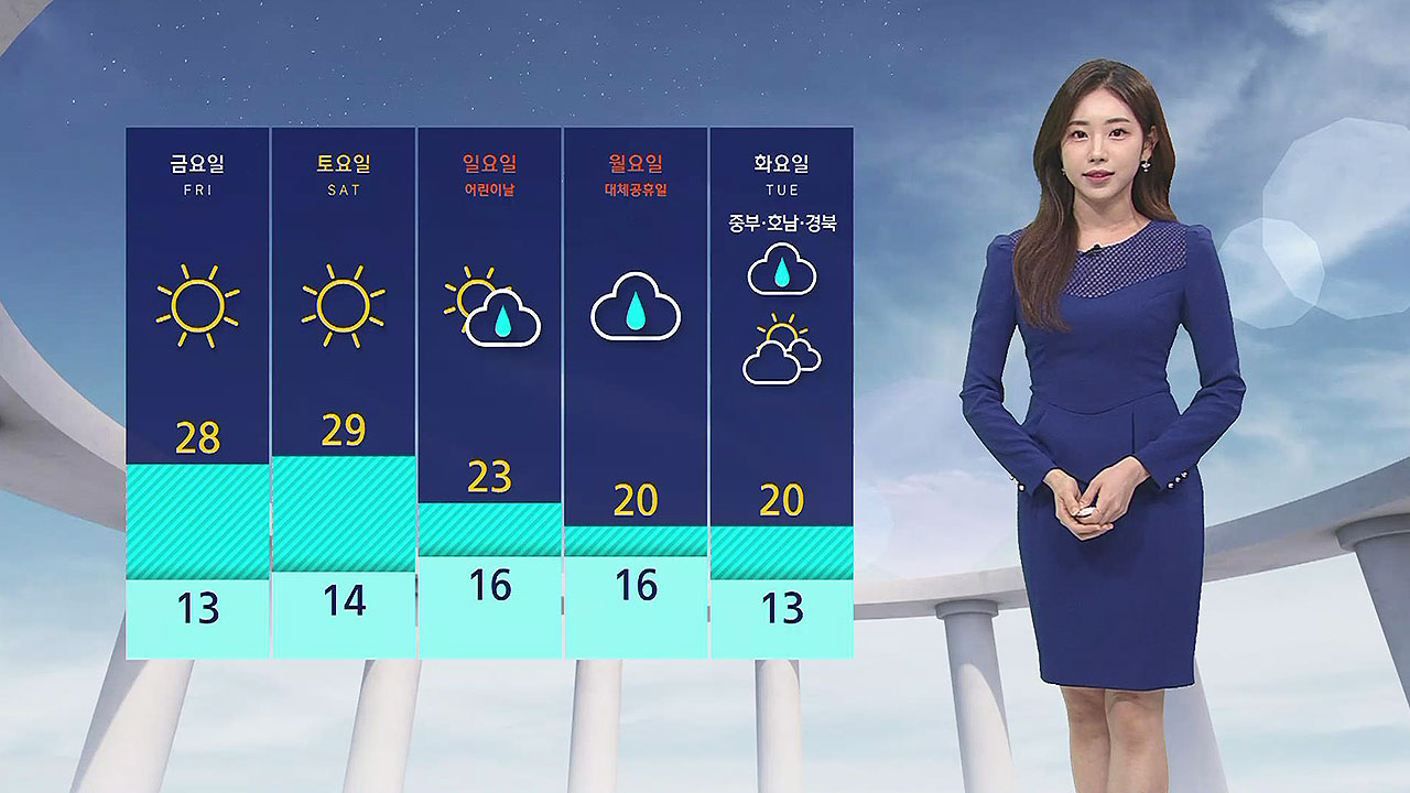 낮이 되면 대부분 25도 안팎까지 올라 예년 수준을 조금 더 웃돌겠습니다.