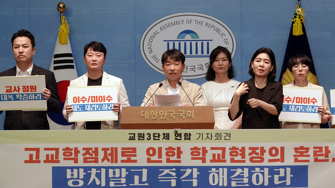 교원 단체들은 오늘(5일) 오전 국회 소통관에서 기자회견을 열고 "준비되지 않은 졸속 시행으로 학교 현장을 극심한 혼란과 과부하 상태로 몰아넣고 있다"며 "고교학점제는 학생의 미래를 위한 제도여야 하지만, 현재의 방식은 학생과 교사 모두를 불행하게 만들고 있다"고 말했습니다.