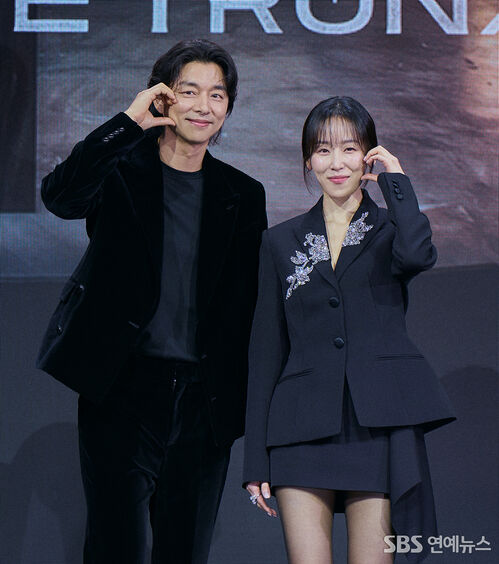 Gong Yoo (left) and Seo Hyun-jin pose for photos at the press conference for the Netflix series 'The Trunk,' held on Nov. 26 at the Raum Art Center in Seoul's Gangnam District.