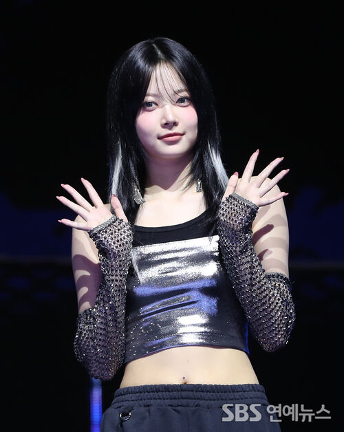 HONG EUNCHAE of LE SSERAFIM stepped into the spotlight on Aug. 29, striking poses at a media showcase celebrating the group’s fourth mini-album, “CRAZY,” held at Seoul’s YES24 Live Hall.