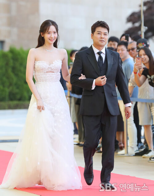 YOONA (left) and Jun Hyunmoo, the evening’s co-hosts, hit the red carpet at the 3rd Blue Dragon Series Awards at Paradise City in Incheon on July 19.