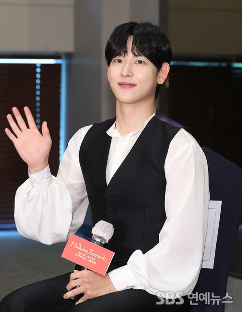 On the morning of June 5, actor Yim Siwan attended a Madame Tussauds Hong Kong wax figure reveal at the ENA Suite Hotel in central Seoul, greeting the cameras with a cheerful wave.