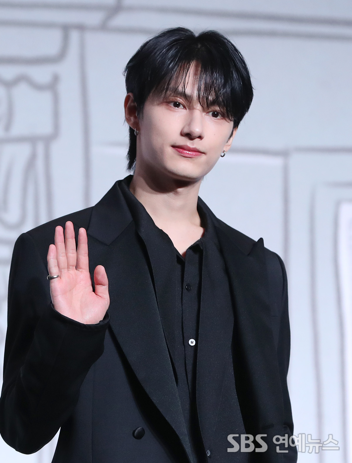 JUN of SEVENTEEN struck a fierce photo-call pose at Conrad Seoul on April 29, 2024, during the press conference celebrating the group’s new album, '17 IS RIGHT HERE,' serving sharp visuals and effortless charisma.