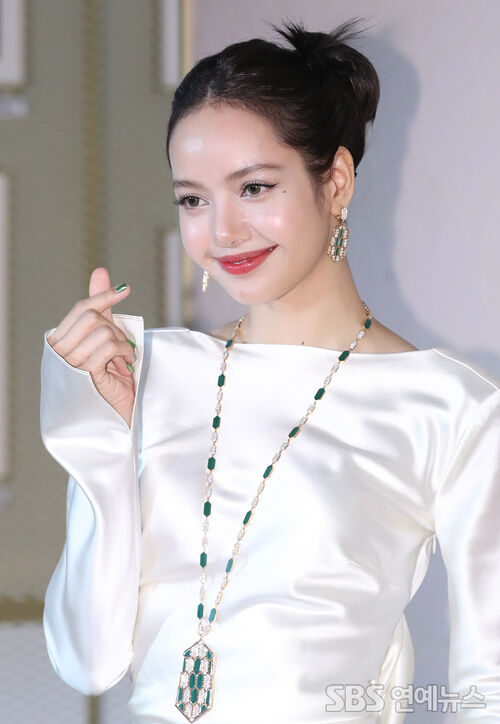 BLACKPINK's LISA lit up Seoul's Kukje Gallery on June 28, stepping out for an exhibition by an Italian jewelry brand and striking poses for the cameras ― including her signature heart gesture.