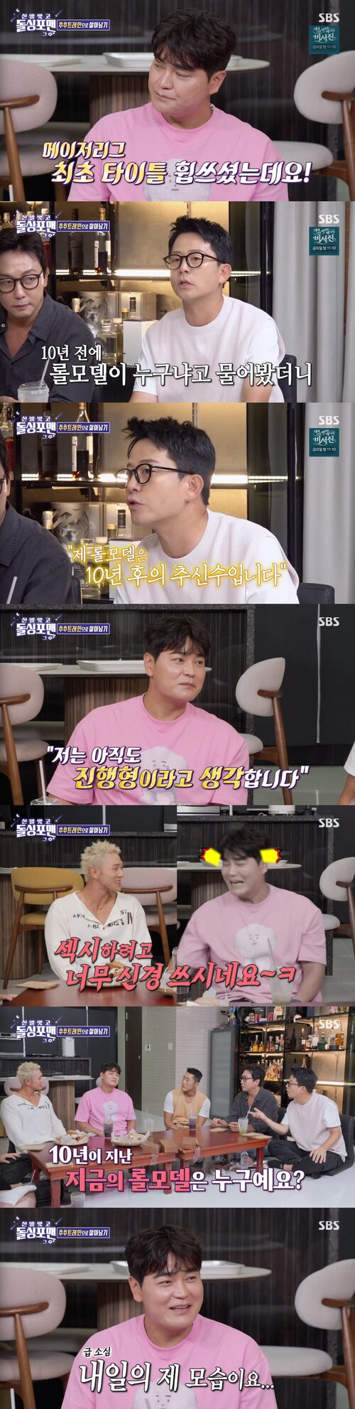 멘트가 좀 닭살스럽다는 평가에도 추신수는 지금의 롤모델로 "내일의 제 모습이요"라고 너스레를 떨어 웃음을 자아냈다.