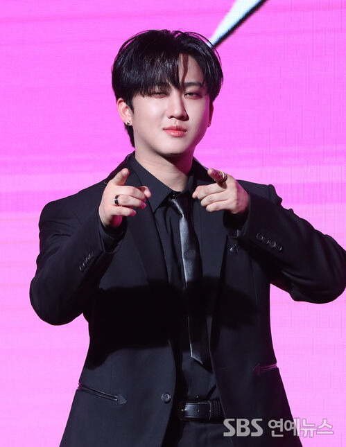 Stray Kids' CHANGBIN brought playful, rock-star energy to the photo call at a press conference celebrating the group's mini-album "ROCK-STAR," held at Conrad Seoul in Yeouido on the morning of Nov. 10, 2023.