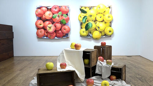보이는 그대로 사과를 모사하지만, 대상의 완벽한 재현을 추구하는 '극사실주의'와는 거리가 있다고 작가는 말합니다.