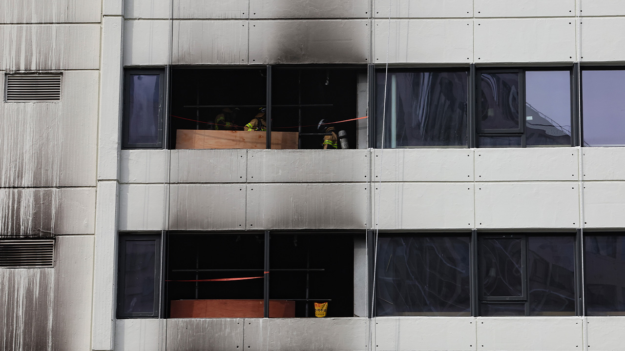 ▲ 21일 서울광장 인근 서울센터빌딩에서 화재가 발생, 검게 그을려 있다.