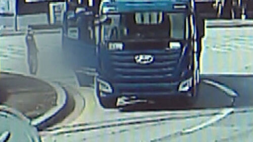 우회전하던 9.5톤 군용 트럭이 멈추지 못하고 그대로 지나갑니다.