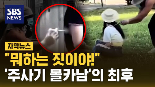 화들짝 놀라는 남성, 이렇게 놀란 이유는 마스크를 쓴 남성이 주사기를 든 채 다가섰기 때문입니다.