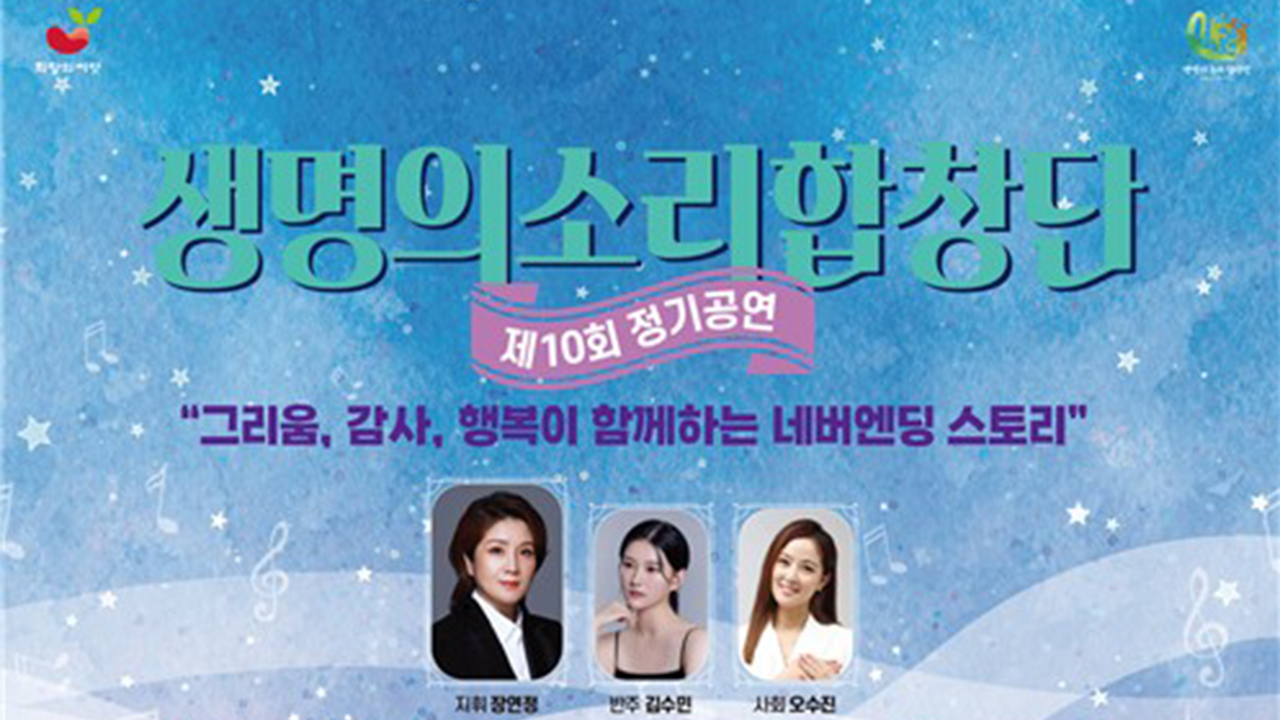 한국장기조직기증원은 생명의소리 합창단이 오는 28일 오후 7시 30분 서울 광진구 나루아트센터에서 정기 공연을 한다고 밝혔습니다.