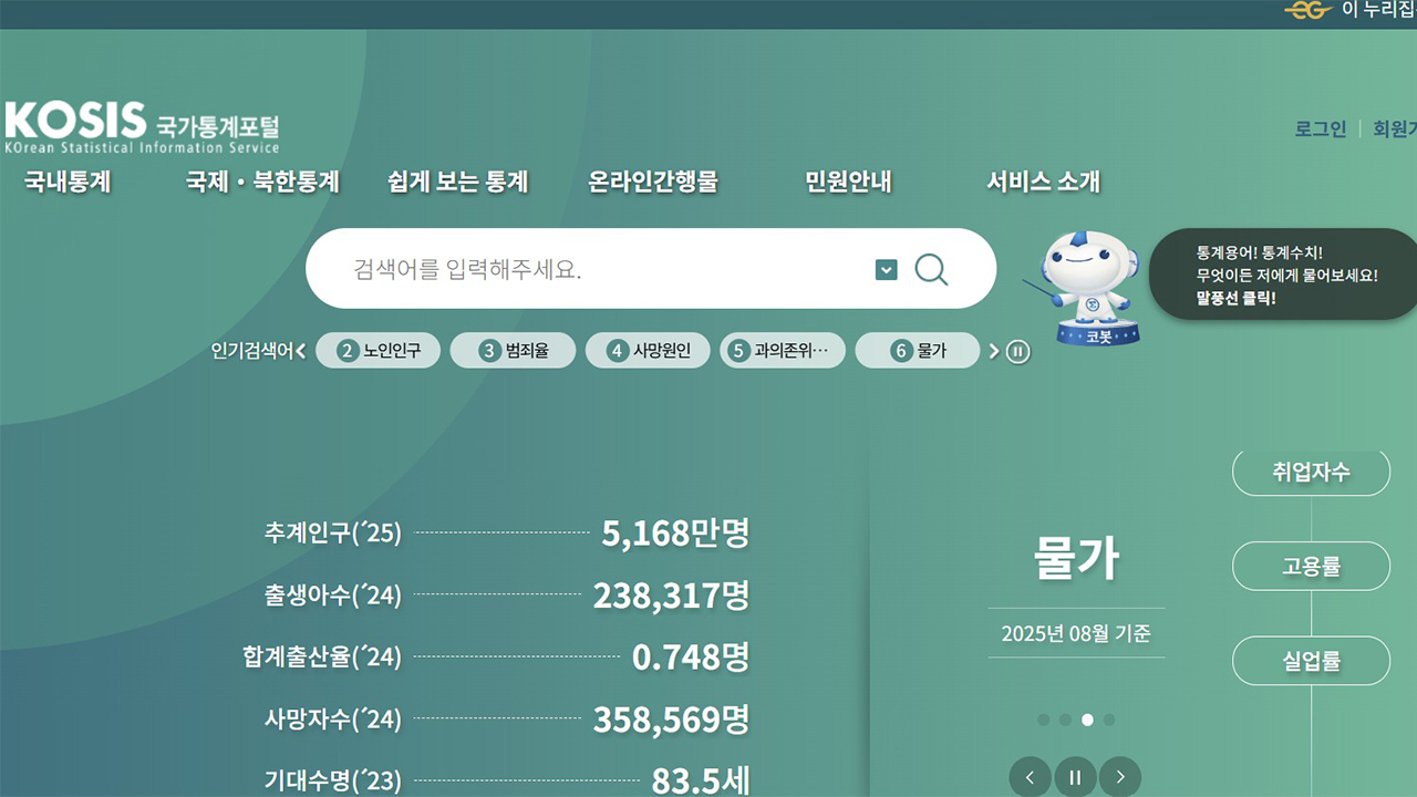 (사진=KOSIS 홈페이지 캡처, 연합뉴스)