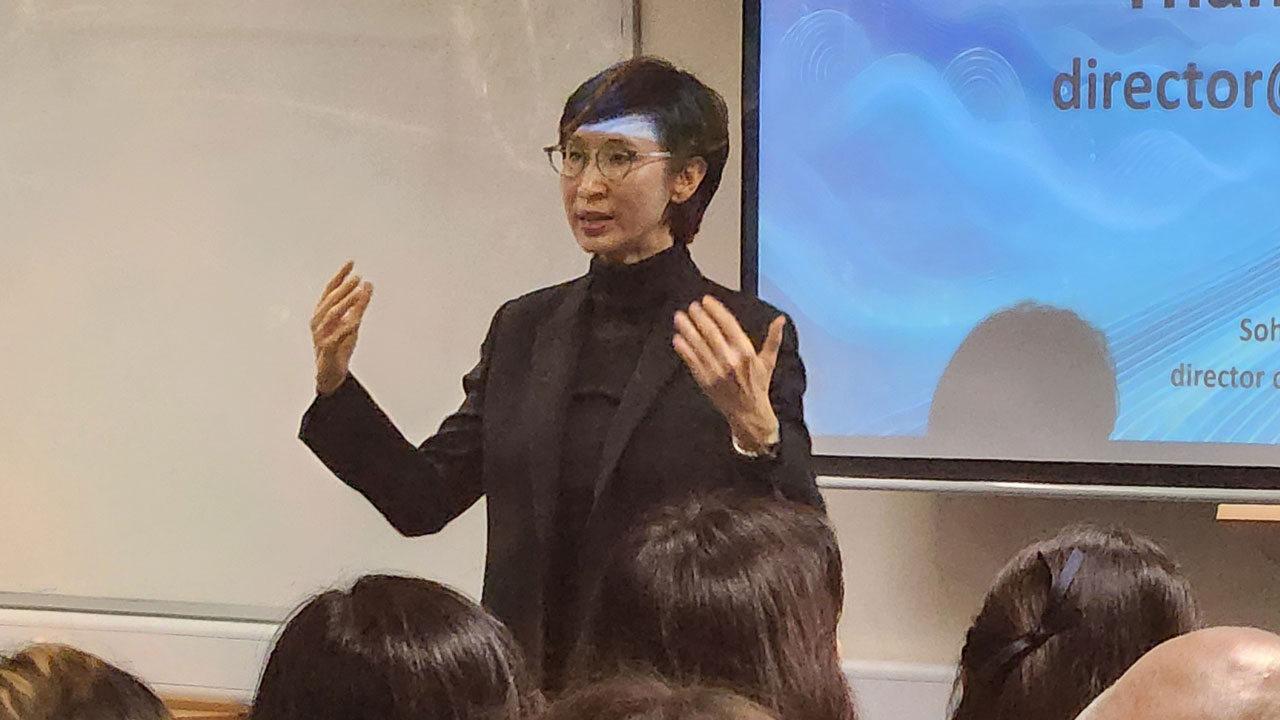 ▲ 노소영 아트센터 나비 관장이 24일(현지시간) 영국 런던 케임브리지대 아시아·중동학부에서 강연하고 있다.