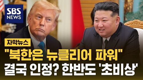 [트럼프/미국 대통령 : (북한은 미국과 대화하기 위해선 핵보유국으로 인정받아야만 한다고 하는데, 그 부분에도 열려 있습니까?) 나는 그들이 일종의 '뉴클리어 파워'라고 생각합니다. 난 그들이 얼마나 많은 핵무기를 갖고 있는지 알고 있습니다. 난 그들에 대해 모든 걸 알고 있고, 난 김정은 위원장과 아주 좋은 관계를 유지하고 있습니다. 그들이 핵보유국으로 인정받아야 한다고 말한다면, 그들은 많은 핵무기를 보유하고 있다고 말하겠습니다.]