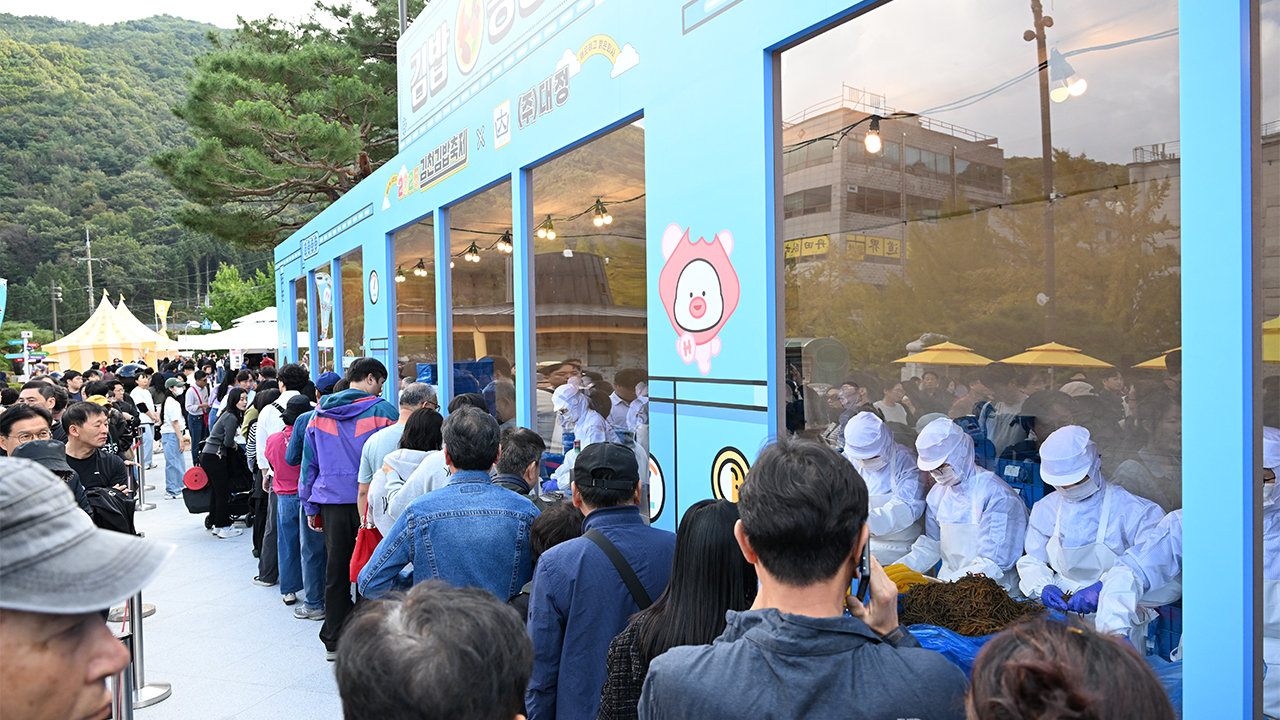 ▲ 김밥축제가 열린 김천에서 지난 25일 방문객들이 김밥을 사기 위해 줄을 서고 있다.