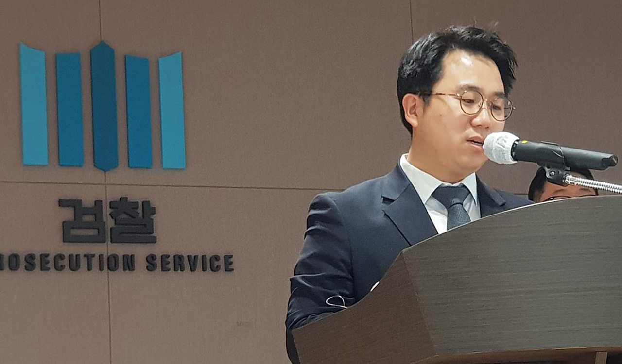▲ 한문혁 검사가 의정부지검 남양주지청 부장검사로 재직하던 2013년 수사 결과 발표 중인 모습.