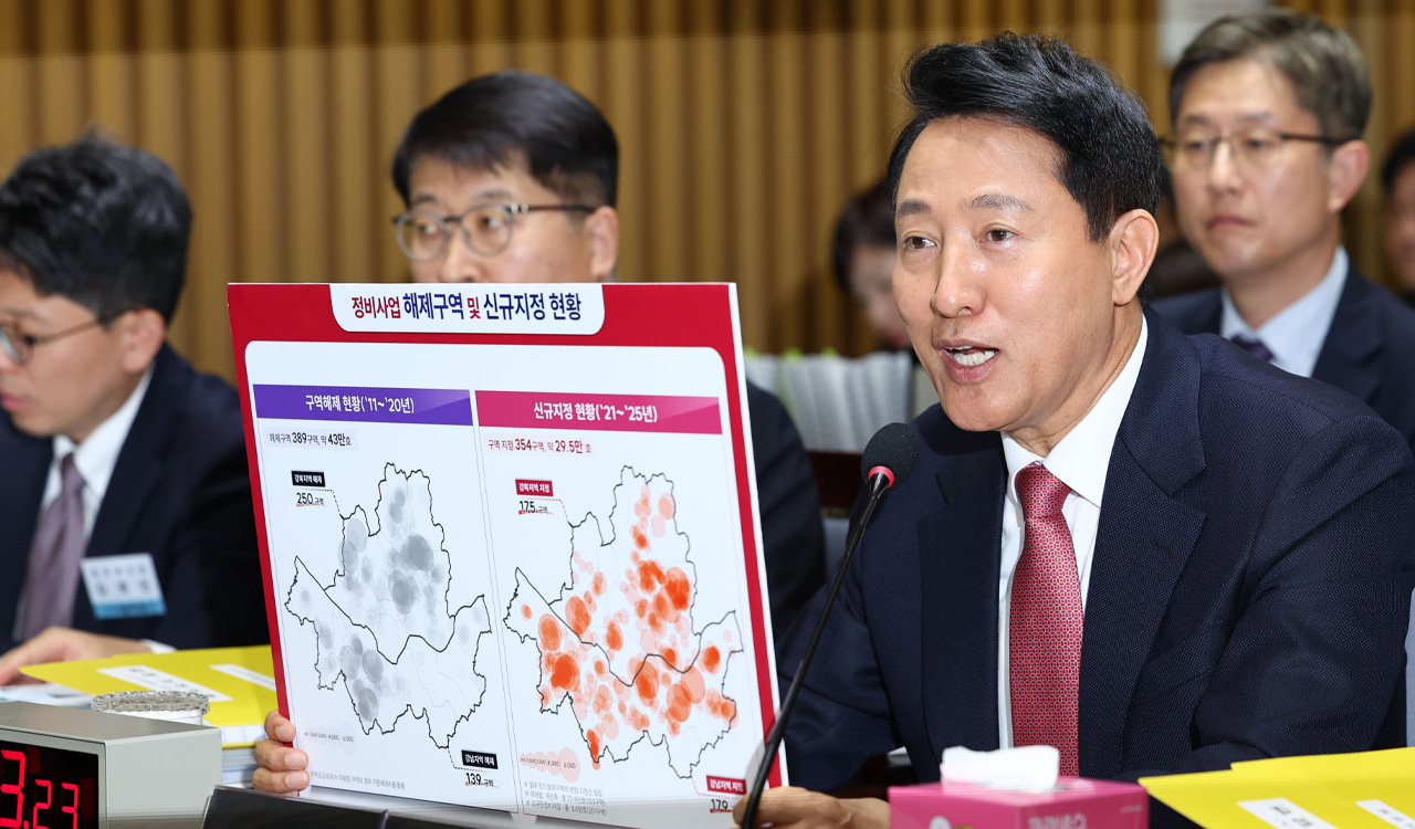 ▲ 오세훈 서울시장이 23일 서울 중구 서울시청에서 열린 2025년 국회 행정안전위원회 국정감사에서 의원 질의에 답하고 있다.
